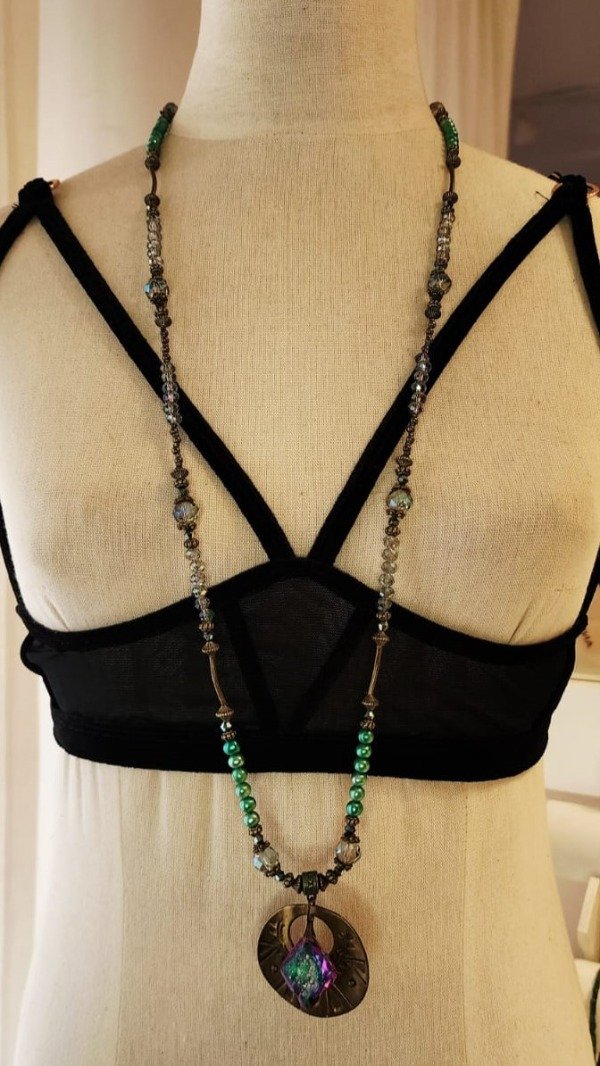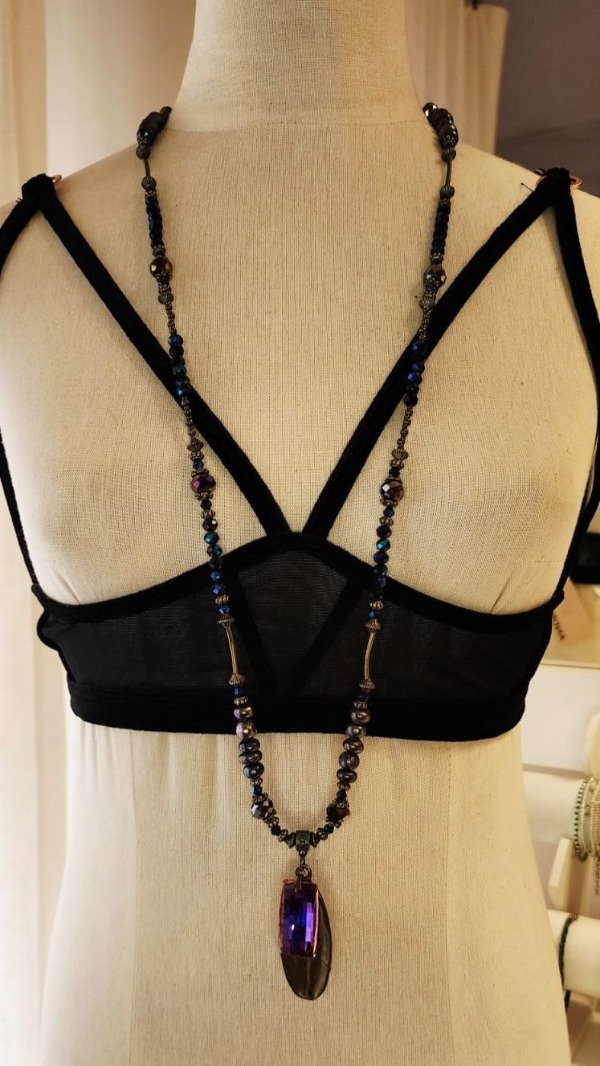 Collar de cristales con dije Swaroski Element. Medida 90 cm.
