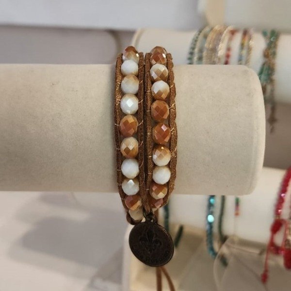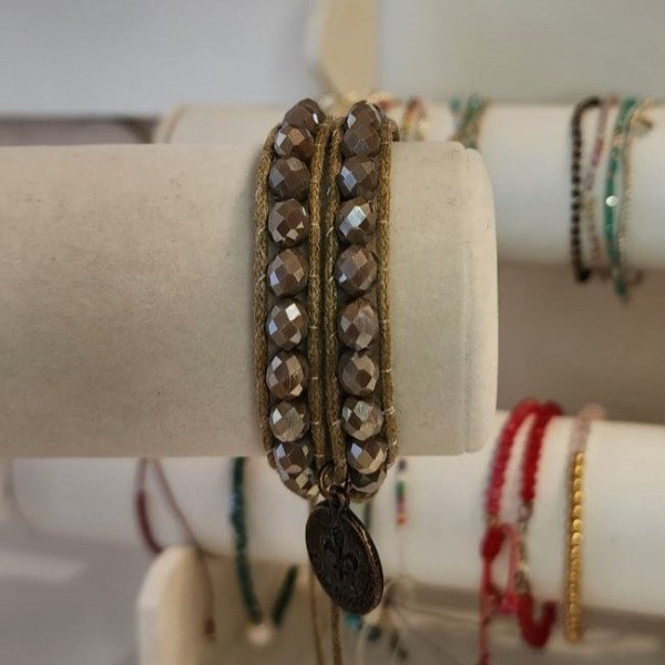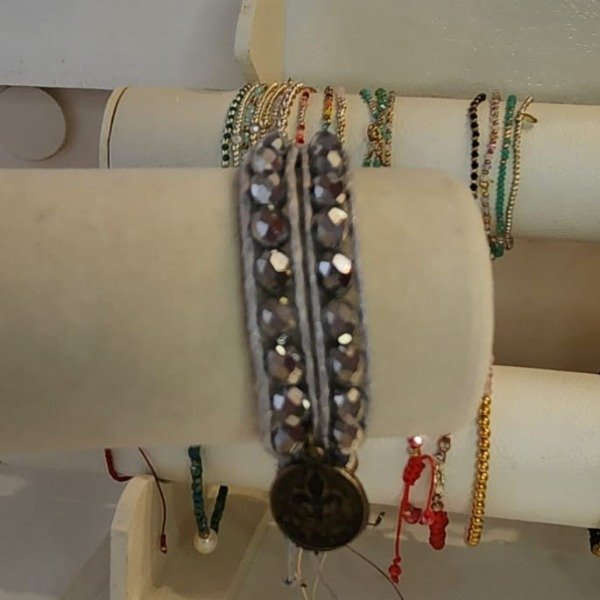 Pulsera choker de cristales tejida a mano, una pieza delicada que combina brillo sutil y un trabajo artesanal que resalta cada detalle. Su diseño versátil permite usarla como pulsera de varias vueltas o como choker, adaptándose a distintos estilos.