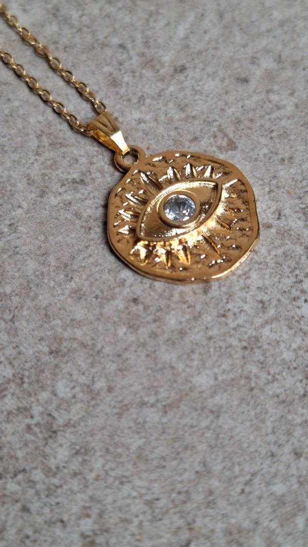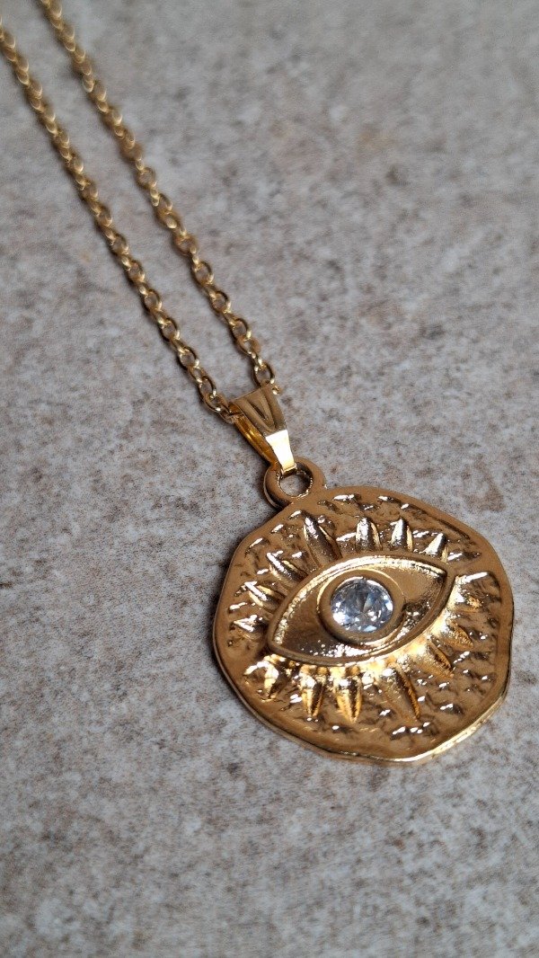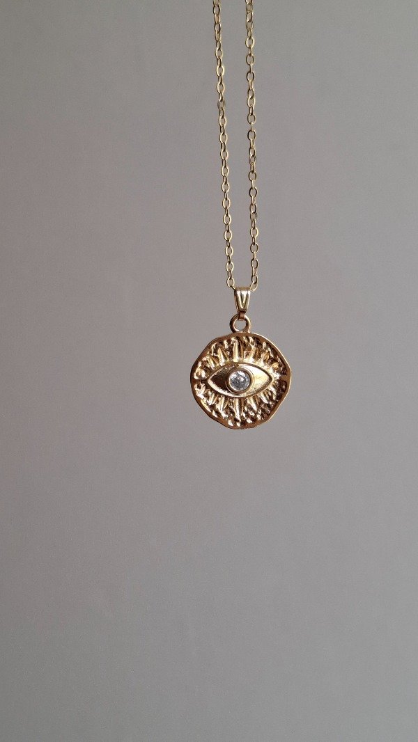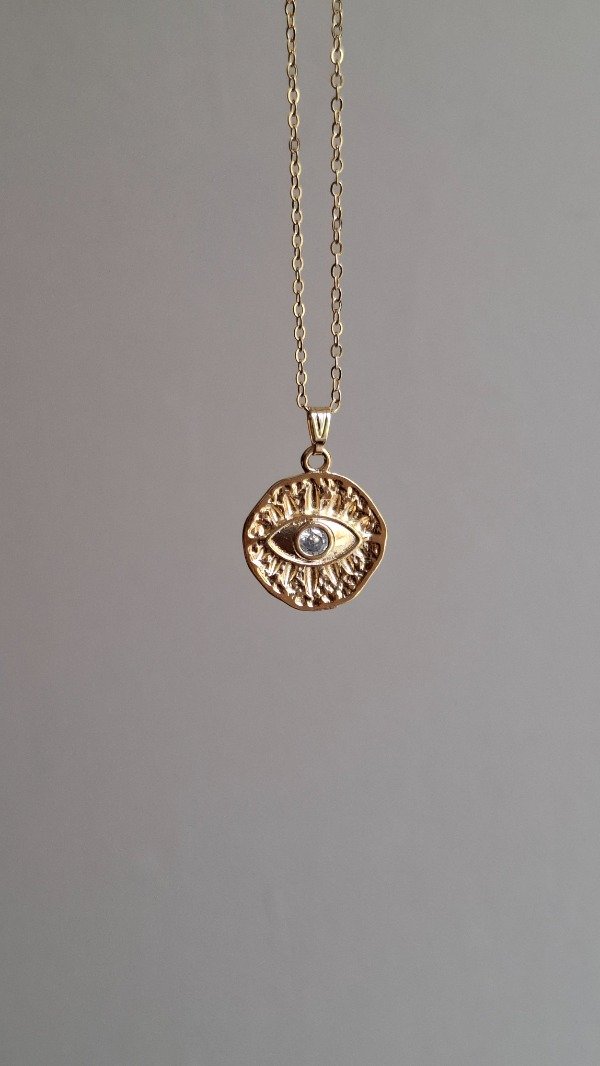 Cadena con dije de ojo turco. Detalle en zircón cristal.